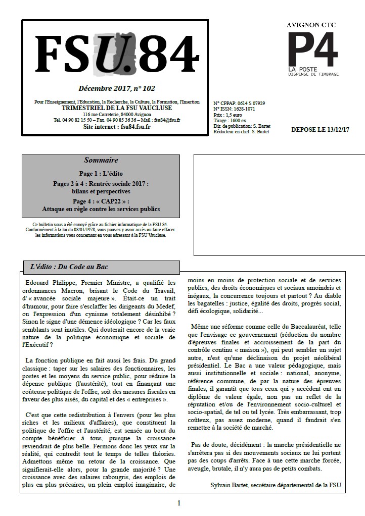 La Sécurité Sociale fête cette année ses 80 ans ! La FSU84[...]