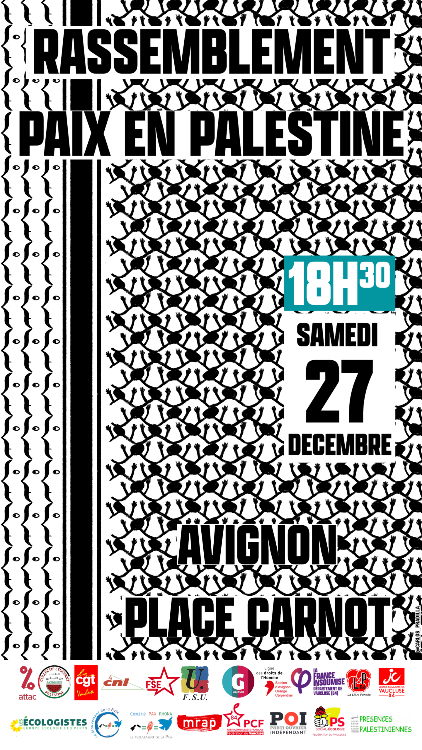 Samedi 27 décembre : Rassemblement pour la paix en Palestine